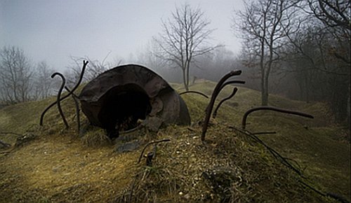 This summer the fence surrounding Paris’s Jardin du Luxembourg was decorated with large photographs. They included images of rusted artillery shells mingled with perky grass, craters taking the role of soft ponds, consumed tanks meshed with countryside, and simply dramatic settings where war was once waged. It was at once a testament to man’s immediate impact on nature and nature’s ability to cure with time. It is possible to say that the scarred landscapes questioned the sensibility of the loss and ruin. Called Terres de Paix, Michael St. Maur Sheil’s exhibit is just one of the many ways the hundredth anniversary of World War I’s start is being commemorated. In a poignant juxtaposition, the nearby newsstand on the Boulevard Saint-Michel sold headlines all summer that reminded readers of the ever-present realities that have converted a sentence into a cliché: “Those who cannot remember the past are condemned to repeat it”. George Santayana’s words are perhaps memorable because they were informed by the fact that his life (1863-1952) did not just witness the “Great War,” but also spanned some of history’s worst violence and most proficient destruction.