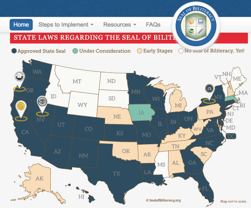 The legislative advocacy was a cooperative effort that will benefit all who value multilingualism as a vital college and career readiness skill. In particular, foreign language teachers and programs will benefit from the transformative effect that Seal implementation in a district represents. We are already seeing, in this third year of the pilot, the inter-district collaboration resulting from the process. When well adopted, participating in the Seal means that districts set proficiency targets, assess their students to see if targets are being met, and make any changes to teaching or programming to do better next year. It is an exciting process that focuses on what the student can do as a result of programming and related to
