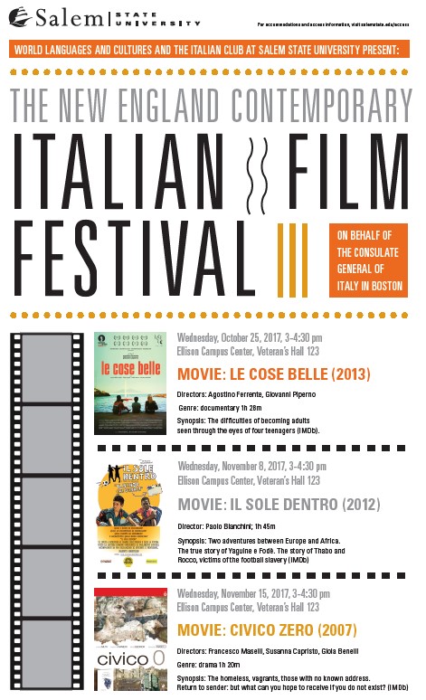 The 2017 New England Contemporary Italian Film Festival at Salem State University